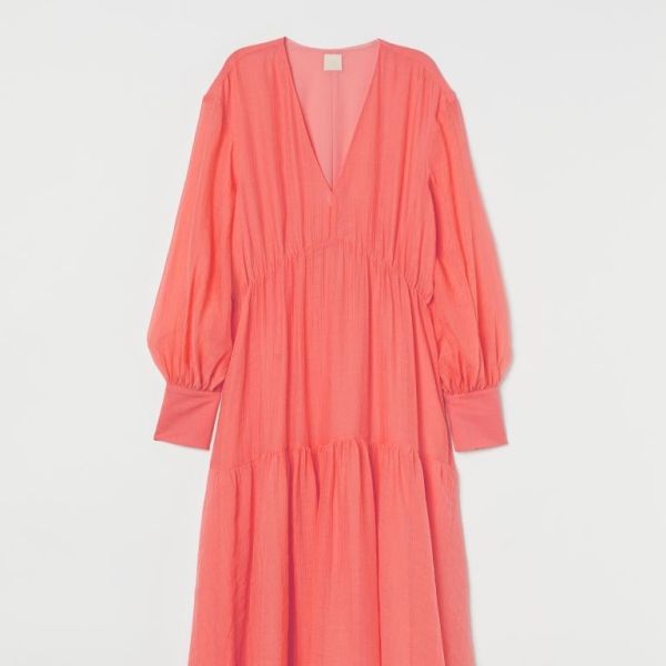 Orange Nylon 100 Tencel Fabric Lyocell Blend Wrap Midi Dress Ruffle Style Images |